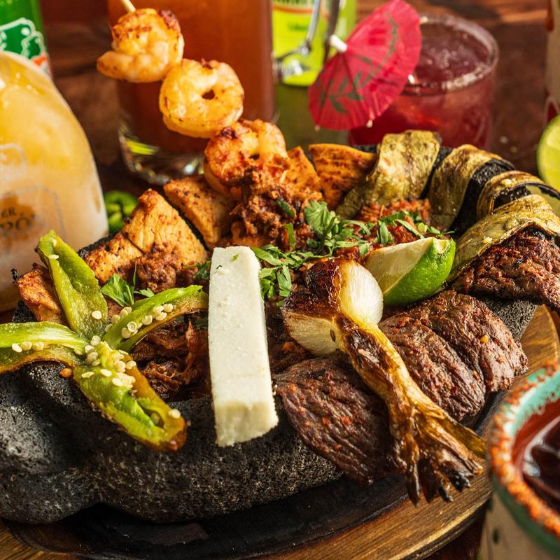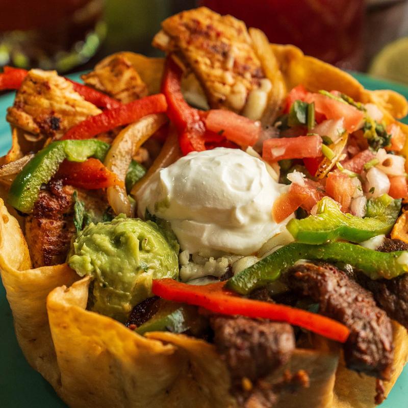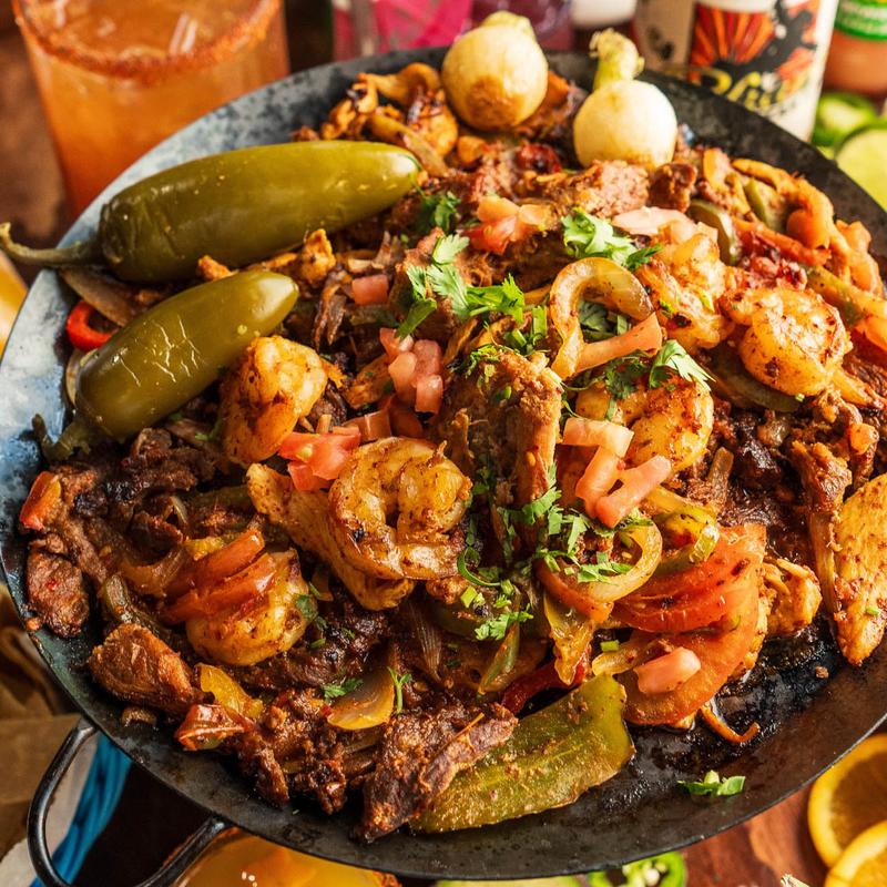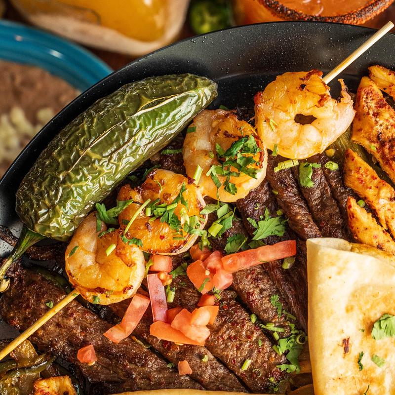 All Sizzlin' fajitas are served with rice, beans, lettuce, guacamole, sour cream, and pico de gallo.