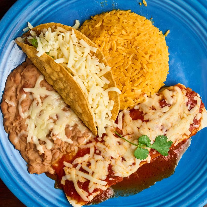 Every combination comes served with Rice and Beans | Choice between: Shredded Chicken | Ground Beef | Beans | Cheese (Extra charges may apply if two or more of the same choices are requested) • Choose from: Burrito | Enchilada | Tamale | Chalupa | Taco | Tostada | Chile Con Queso | Chile Relleno (only one per combination) • Make your combo supreme +$2.50 each: Lettuce | Sour Cream | Tomato | Shredded Cheese • Add Cheese Sauce on top +$2.99 extra